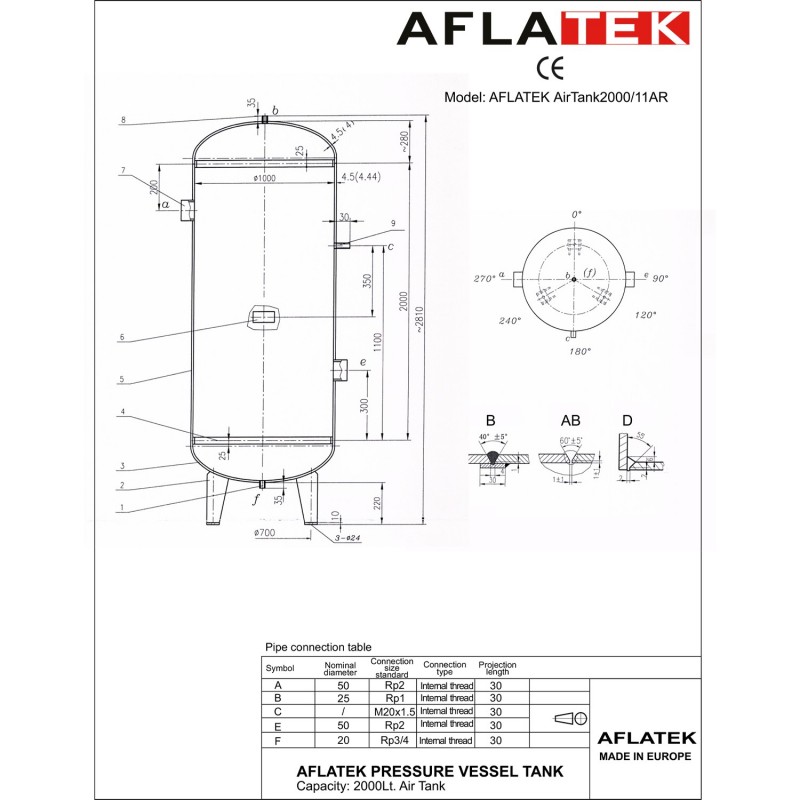 AFLATEK Pressure Vessel Tank with AntiRust inside and outside painting