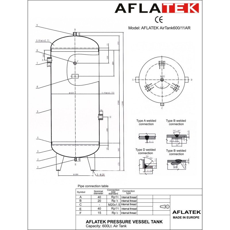 pressure vessel, AFLATEK AirTank600, air compressor tank, durable air tank, high-pressure air tank, industrial air storage, pneumatic equipment