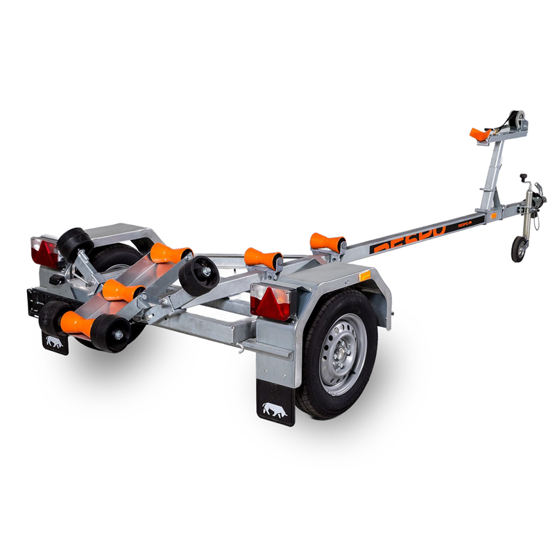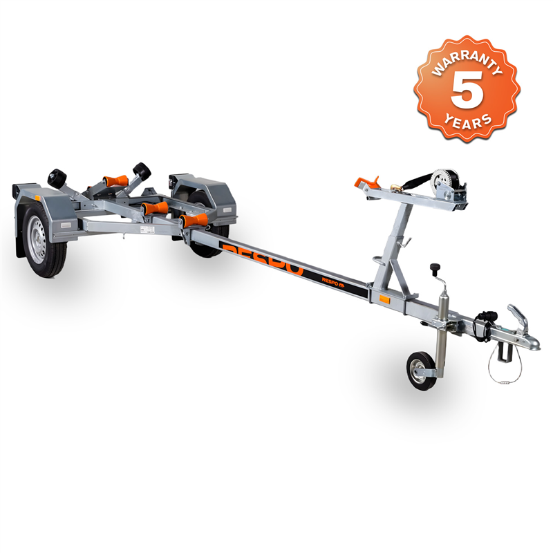 Durable 700kg boat trailer for vessels up to 5m. Features Magnelis® corrosion protection, waterproof LED lights, and adjustable rollers. Payload 538kg.