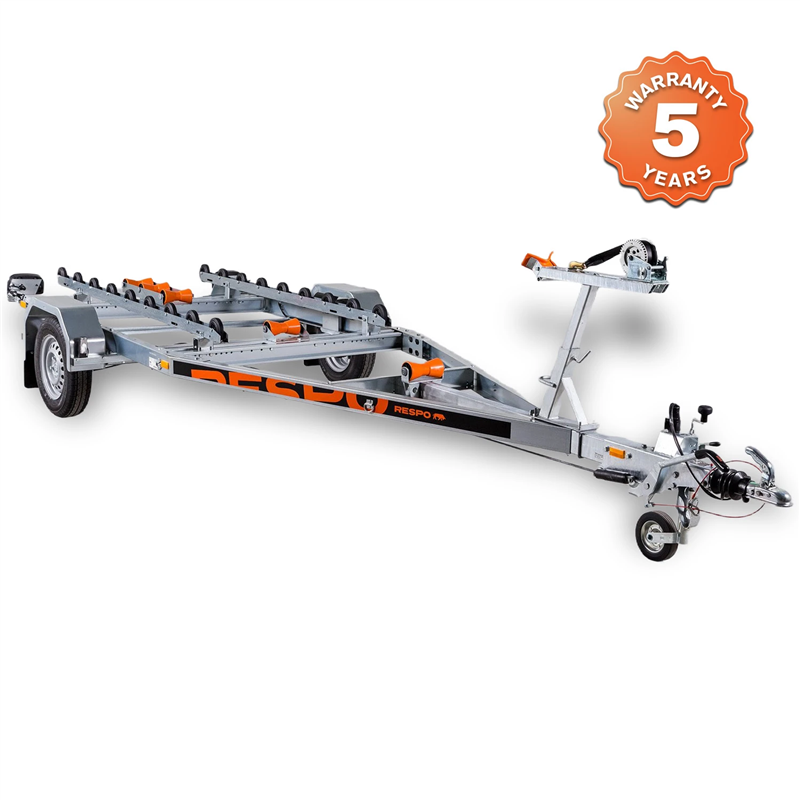 galvanised trailer, boat trailer, marine transport, braked trailer, Respo trailer, boat transporter, 1000kg trailer, Pioner boat trailer, River boat trailer