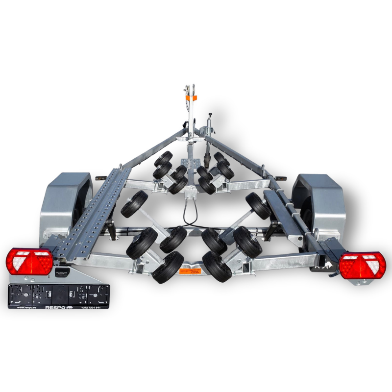 The 1200V571 Multiroller is an innovative boat trailer designed to make launching and retrieving your vessel effortless. It features a sophisticated self-adjusting system with 16 rollers, ensuring smoother and safer loading and unloading operations. This unique multi-roller design adapts to the hull of your boat, providing superior support and reducing the physical effort required at the ramp.