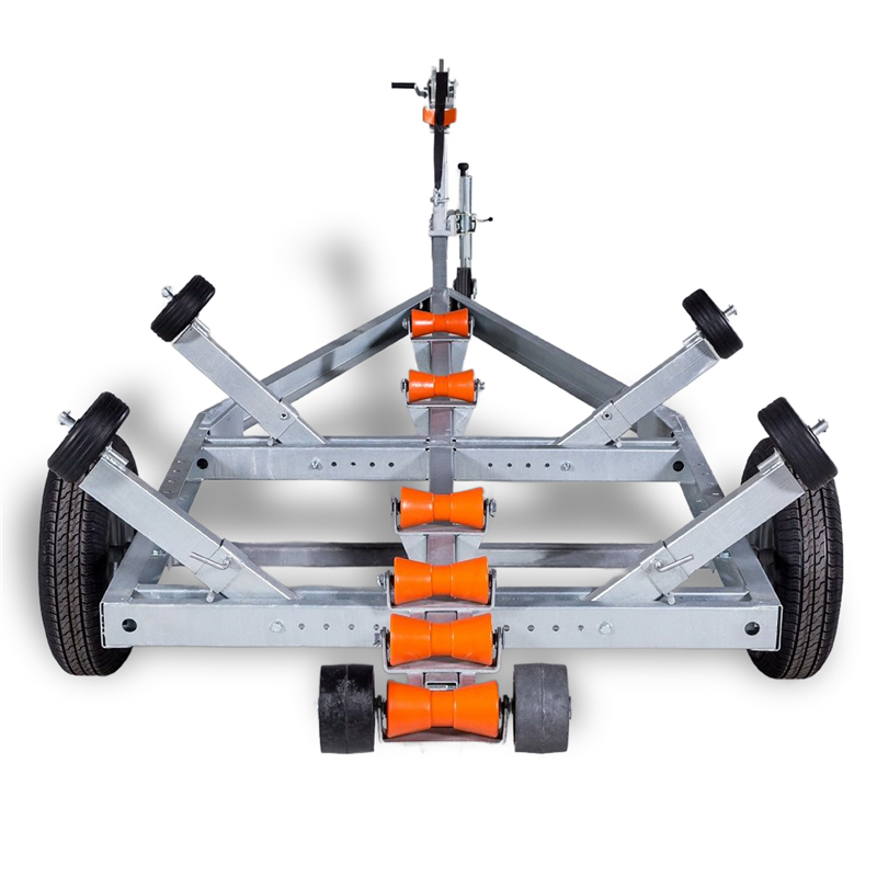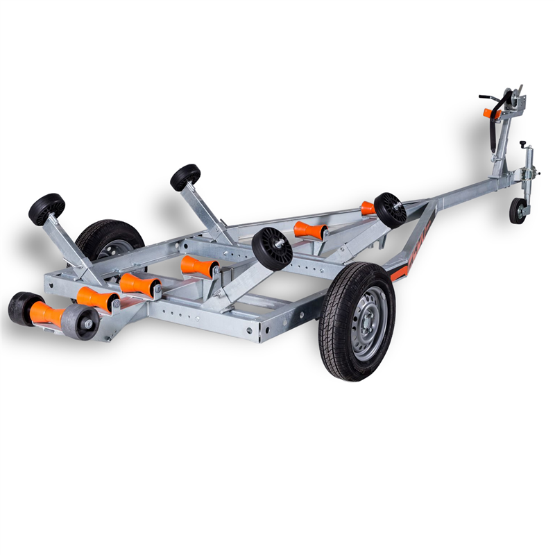 To ensure your vessel is transported safely within the harbour or yard, the trailer is equipped with keel rollers and adjustable support rollers that provide even support to the boat's hull. The inclusion of a 900 kg winch with a belt facilitates easy loading and unloading operations.