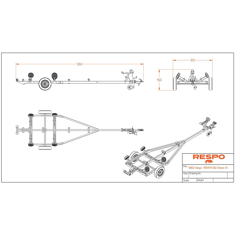 The 1350V591J182 Harbour Trailer is a robust solution designed specifically for the storage and launching of boats. Constructed with a tough and durable hot-dip galvanised (HDG) welded steel frame, this trailer offers superior resistance to corrosion, making it ideal for marine environments. It is engineered to accommodate boats up to 5.9 metres in length.