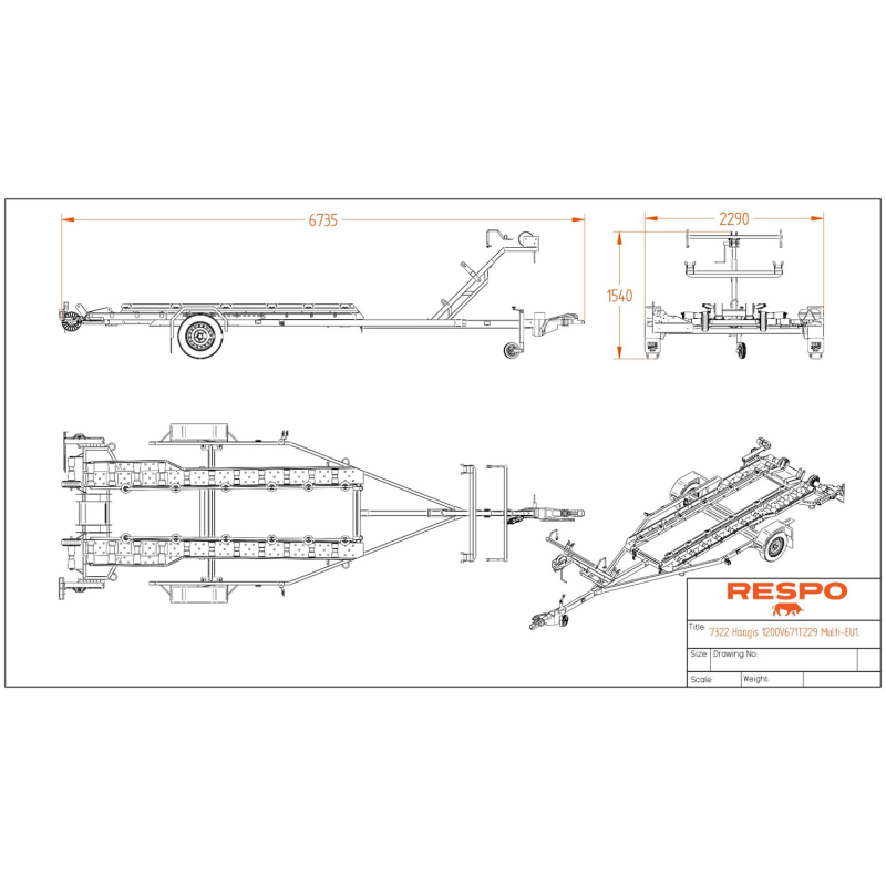 galvanised trailer, boat trailer, marine trailer, Respo trailer, 1350kg trailer, boat launching, Pioner Multi III, Pioner Multi Pro III, Respo 1350V671T229, tipping cradle