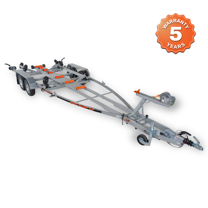 galvanised trailer, boat trailer, marine transport, tandem axle trailer, braked trailer, 2000kg trailer, Respo trailer, boat hauler