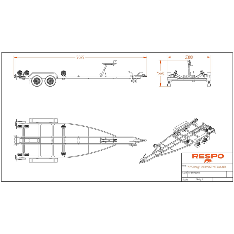 The Respo 2000V712T230 is a premium tandem axle boat trailer designed to transport vessels up to 7 metres in length safely and efficiently. Engineered for durability and ease of use, this trailer features fenders and other key components manufactured from high-quality sheet metal coated with Magnelis®. This advanced coating offers superior protection, being three times more resistant to corrosion than standard HDG (Hot-Dip Galvanised) finishes, ensuring your trailer withstands harsh marine environments.