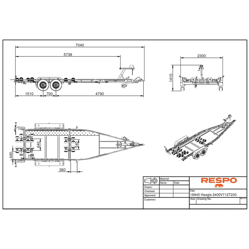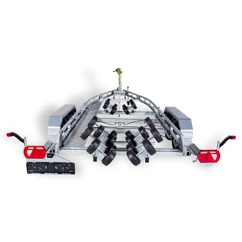 The 2400V712 Multiroller is an innovative heavy-duty trailer designed to provide the smoothest and safest loading experience for your vessel. Featuring a unique self-regulating roller system, this trailer automatically adapts to the shape of your boat's hull. The absence of keel rollers makes this model particularly suitable for boats with non-standard bottoms, ensuring even weight distribution and protection during transport.