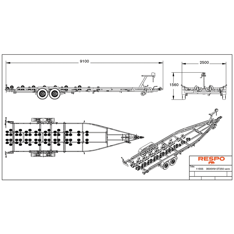 The 3500V912 Multiroller Heavy is the largest two-axle model in the multiroller range, engineered for the safe and efficient transport of larger vessels. Designed with a robust double hot-dip galvanised steel frame, this trailer offers exceptional durability and resistance to corrosion, making it ideal for marine environments.
