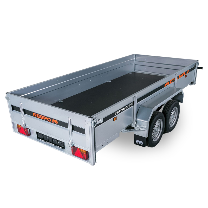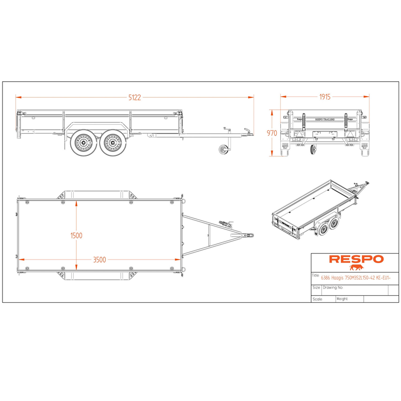Robust welded frame trailer with Magnelis® coating and tandem leaf spring suspension. Features waterproof LED lights, tipping function, and 3.50x1.50m internal dimensions. Durable and slip-resistant.