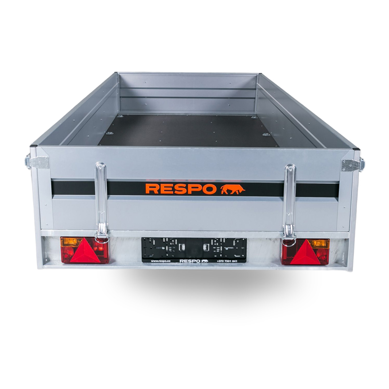 Outstanding handling and stability are achieved through a sophisticated suspension system featuring 2x leaf spring axles (tandem axle configuration), shock absorbers, and waterproof wheel hubs. The floor is crafted from durable waterproof plywood with a slip-resistant surface, ensuring your cargo remains secure during transport. This model is best described as a user-friendly trailer of superior quality, designed to withstand rigorous conditions.