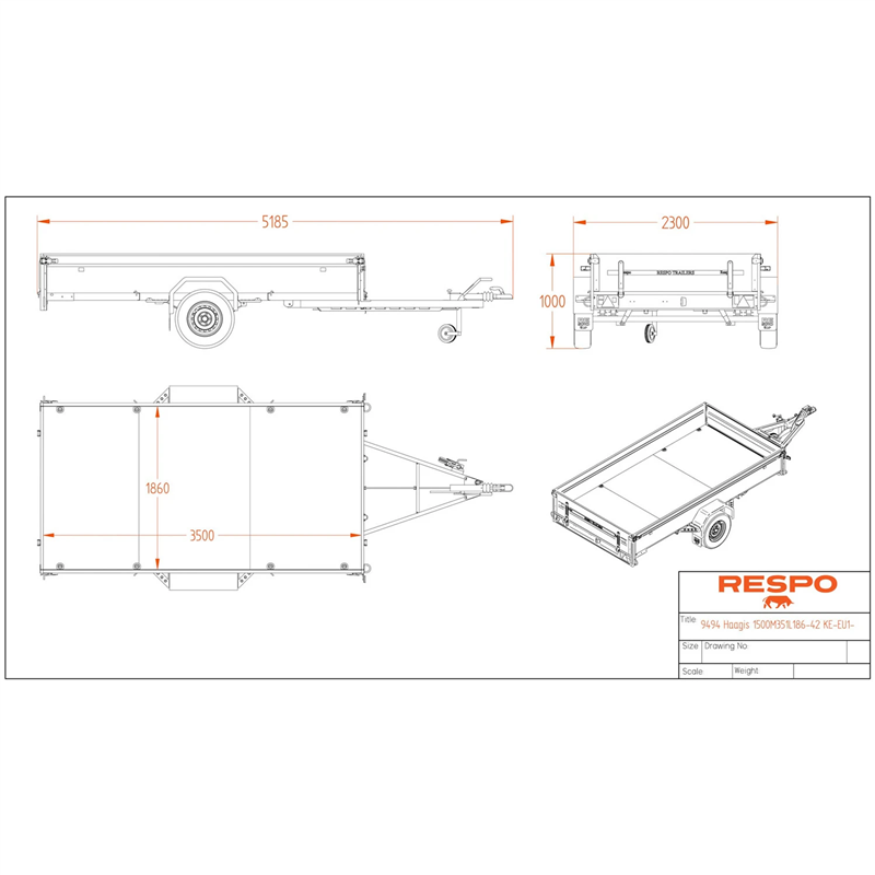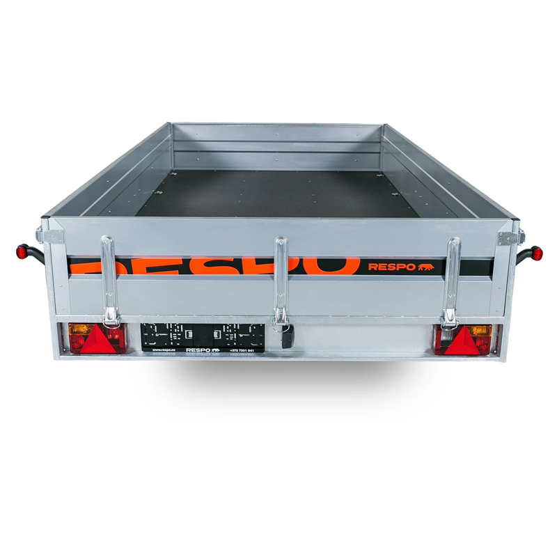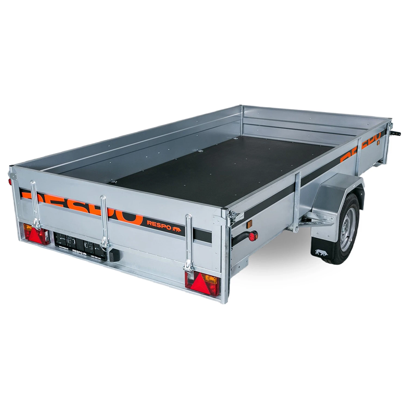 Outstanding handling and stability are achieved through a premium suspension system featuring 3-sheet leaf springs, shock absorbers, and waterproof wheel hubs. The cargo area is fitted with a durable plywood floor that is not only waterproof but also slip-resistant, providing a secure base for your goods. With a gross weight of 1500 kg and a generous payload capacity of 1030 kg, this braked trailer includes a tipping function for versatile loading and unloading.
