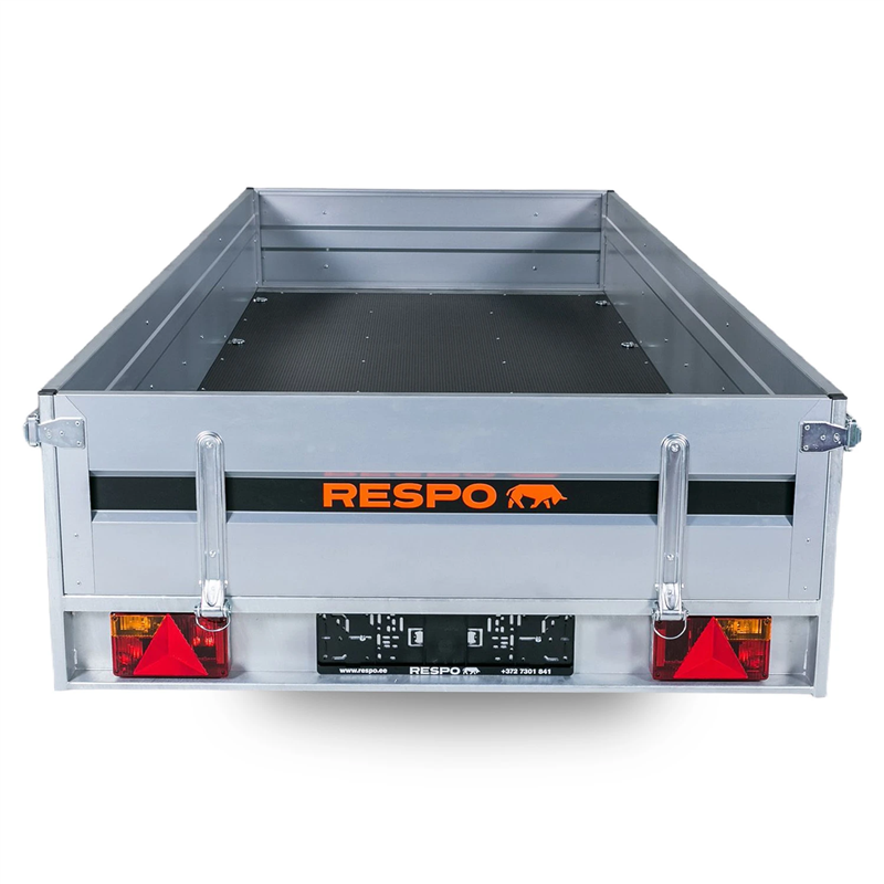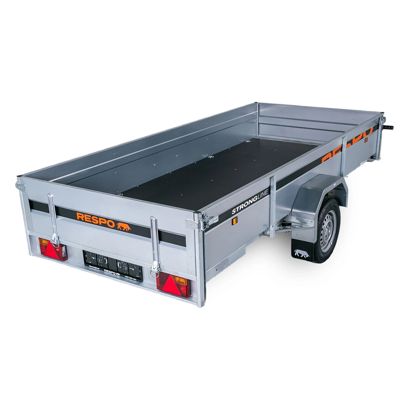 Outstanding handling and stability are guaranteed by the heavy-duty suspension system, featuring four-leaf springs and integrated shock absorbers. Combined with waterproof wheel hubs and M+S (Mud and Snow) tyres, this trailer delivers a smooth and reliable performance across various terrains and weather conditions. The interior features a durable, waterproof, and slip-resistant plywood floor, making it ideal for transporting a wide range of goods safely and securely.