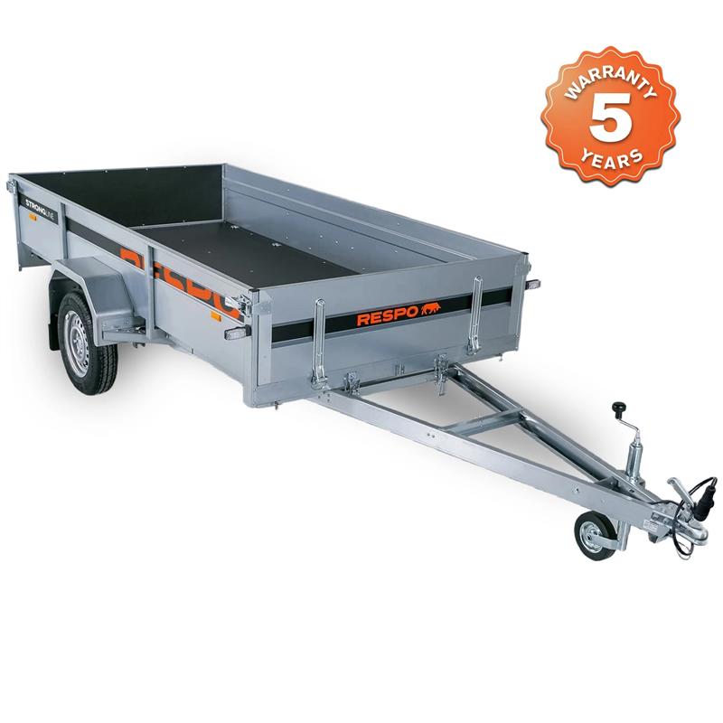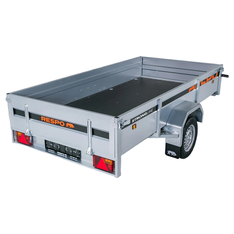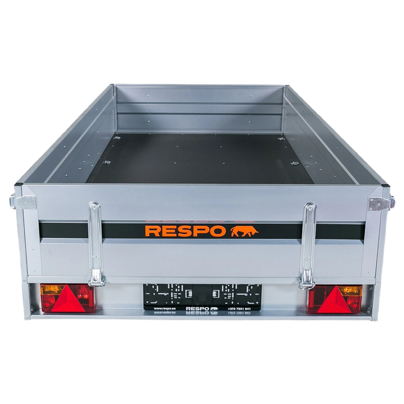 Exceptional handling and a long service life are guaranteed by the 4-leaf spring suspension system, paired with shock absorbers and waterproof wheel hubs. The cargo area features a robust floor made from waterproof, non-slip plywood, ensuring your load remains secure during transport. This model also includes a tipping function for easy unloading of bulk materials.