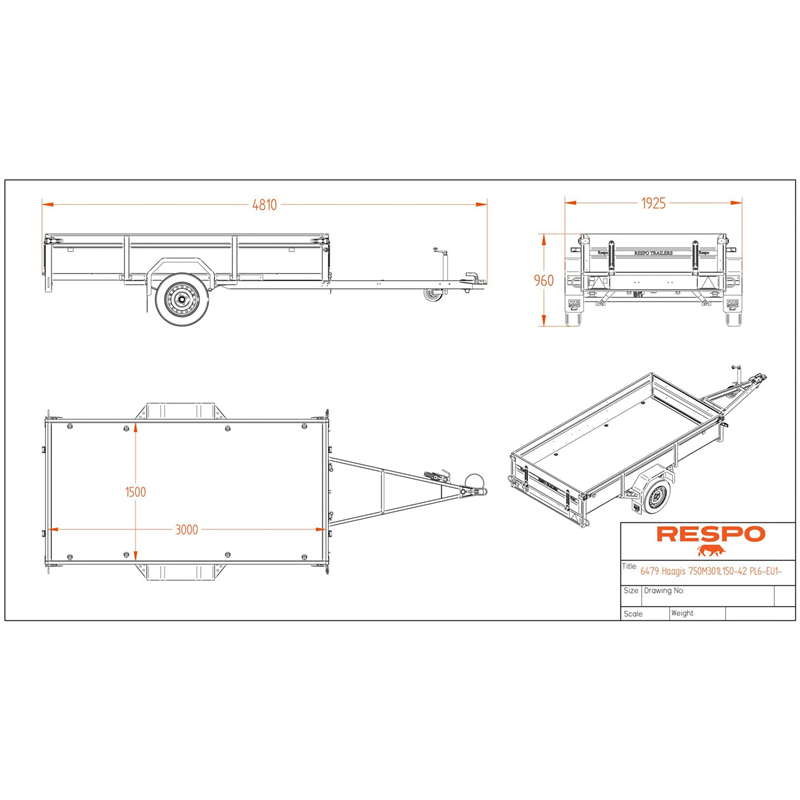 The 750M301L150 PLH is a high-quality, innovative trailer designed for rigorous professional and domestic use. It features monolithic bent side panels and is assembled using ultra-durable HuckLok® rivet connections, ensuring structural integrity under load. The trailer is constructed from sheet metal treated with a Magnelis® coating, which is scientifically proven to be three times more resistant to corrosion than standard HDG (Hot-Dip Galvanised) sheet metal.