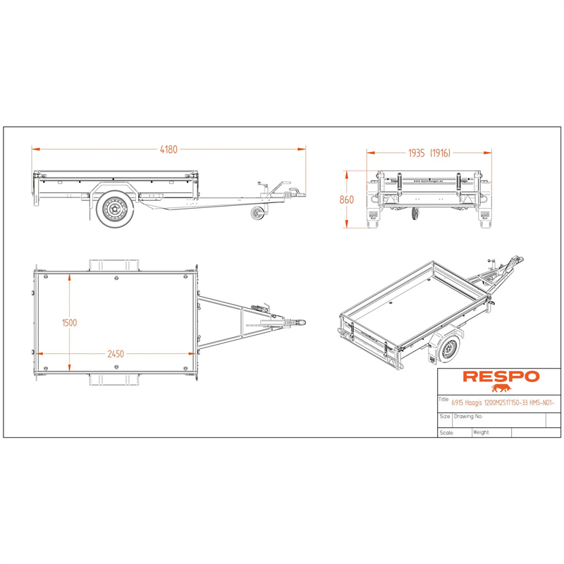 Magnelis trailer, utility trailer, single axle trailer, heavy duty trailer, tipping trailer, torsion axle trailer, braked trailer, 1200kg trailer