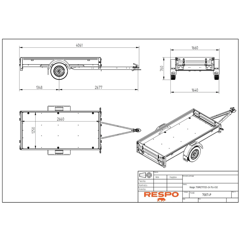 Designed for versatility, this model features a tilting cargo box, allowing for easier loading and unloading of bulk materials or garden equipment. The robust plywood floor is both waterproof and non-slip, providing a secure base for your cargo. With a gross weight of 750 kg and a payload capacity of 578 kg, it is an ideal solution for both household and light commercial transport needs. The trailer is equipped with high-quality electrical components, including waterproof front LED lights, ensuring visibility and safety on the road.