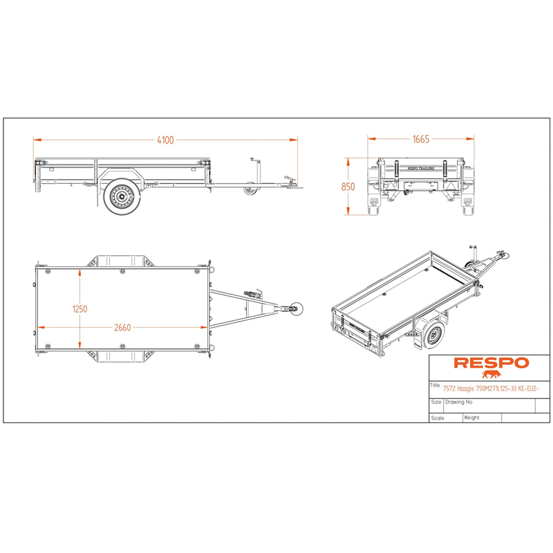 utility trailer, 750kg trailer, heavy duty trailer, tipping trailer, leaf spring suspension, Magnelis coating, welded trailer, cargo trailer