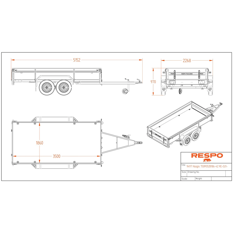 The 750M352B186 is an exceptionally robust and durable utility trailer designed to withstand the most demanding conditions. Built upon an extremely tough steel welded frame, this trailer features load-bearing boards and fenders manufactured from high-quality sheet metal coated with Magnelis®. This specialised coating provides three times the corrosion resistance of regular hot-dip galvanised steel, ensuring longevity even in harsh environments.