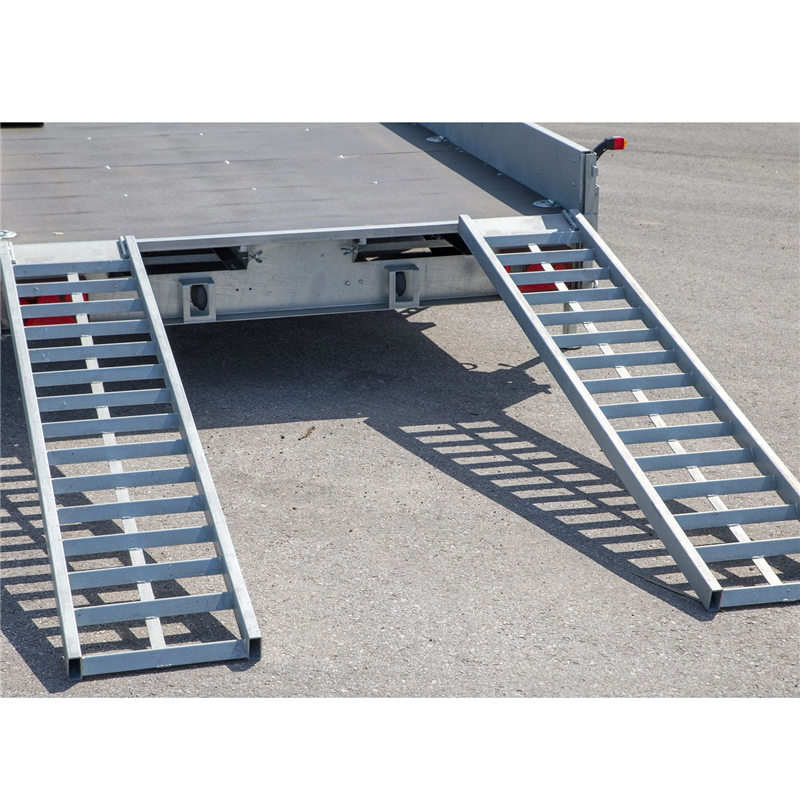 Designed for functionality and convenience, the trailer includes specially designed step-on fenders and side steps. The lower board profile allows you to conveniently open car doors, providing easy access to the vehicle while it is secured on the trailer. With a gross weight of 2700 kg and a tipping mechanism, this trailer is a versatile solution for vehicle logistics.
