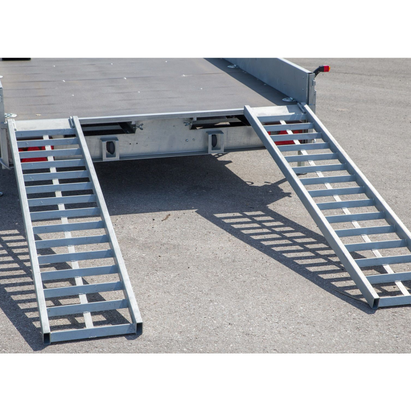 This sturdy and reliant trailer is specifically designed for professional car transportation. It features a durable hot-dip galvanised (HDG) coated welded steel frame, ensuring long-lasting structural integrity. The load-bearing boards and fenders are manufactured from high-quality sheet metal coated with Magnelis®, a material that is three times more resistant to corrosion than regular hot-dip galvanisation. This advanced coating ensures the trailer remains in excellent condition even under harsh weather conditions.