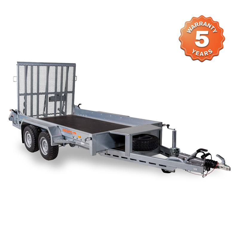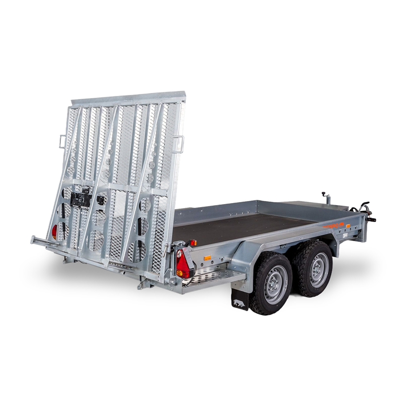 Robust plant trailer for excavators and miniloaders. Features a 3500kg gross weight, 2689kg payload, hot-dip galvanised frame, and full-size loading ramp.