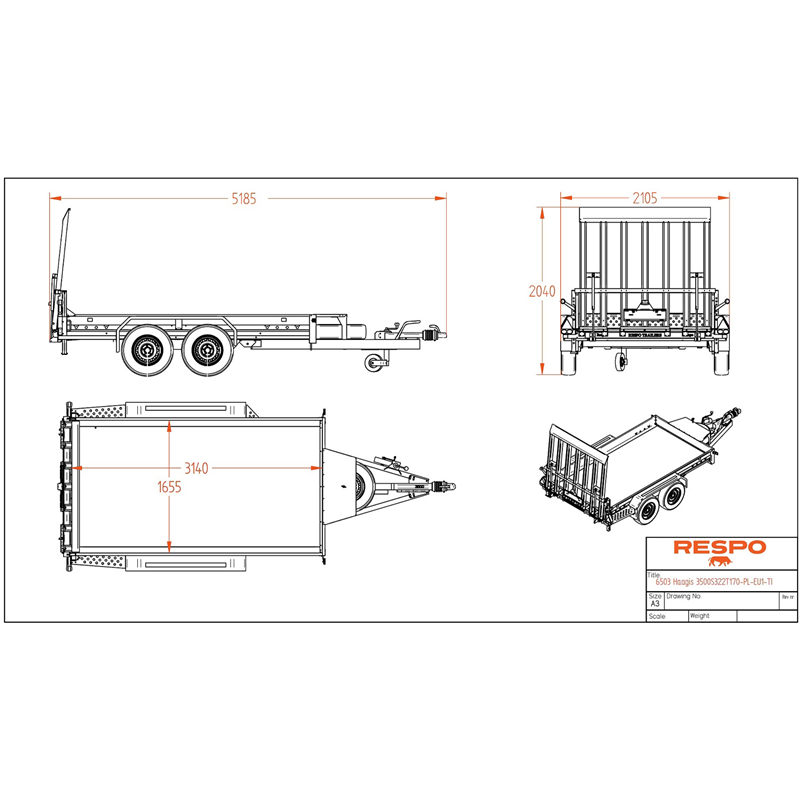 galvanised trailer, heavy duty trailer, twin axle trailer, 3500kg trailer, excavator trailer, machinery transporter, plant trailer