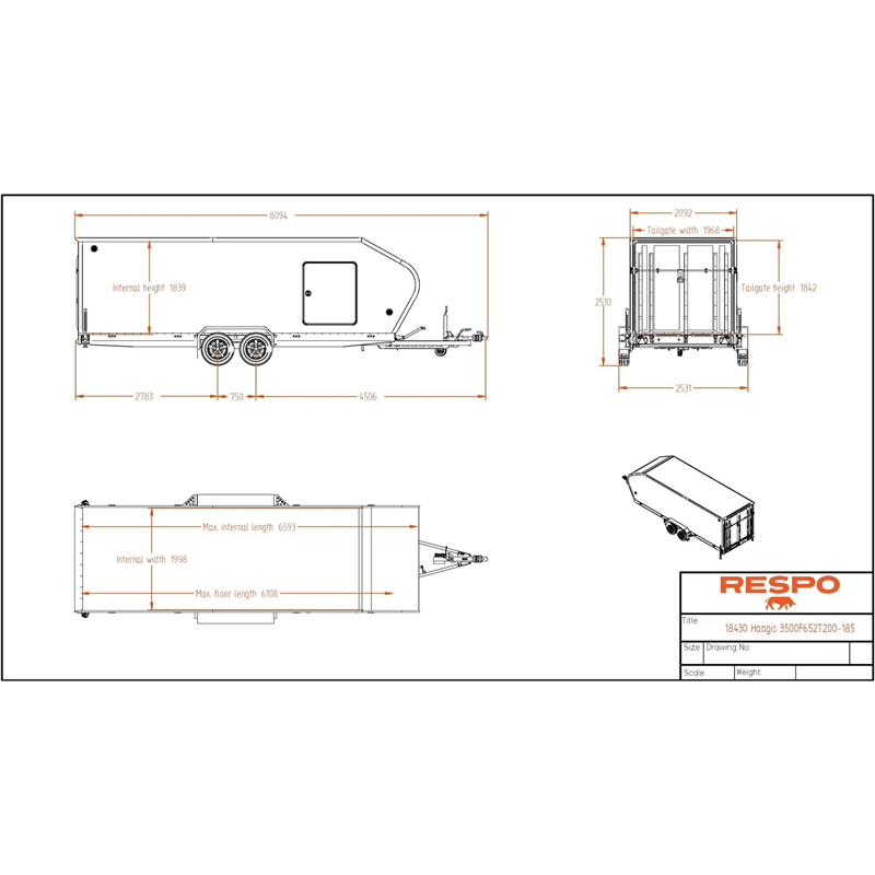 3500kg trailer, car transporter, vehicle transport, aerodynamic trailer, enclosed trailer, motorsport trailer, Respo, tilt trailer