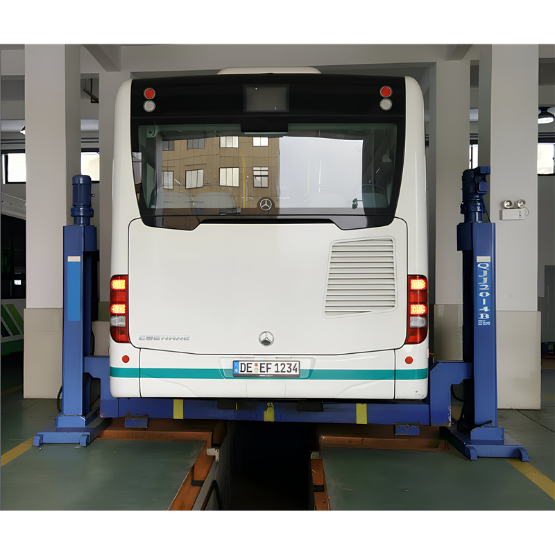 The AFFJ20-4B 20T Bus Lift is a heavy-duty electromechanical lift designed for the reliable maintenance and servicing of passenger cars and trucks up to 20 tons. Engineered with four robust columns and a precision orbital steel frame, this lift is ideal for fleet workshops, municipal garages, and commercial vehicle service centers.