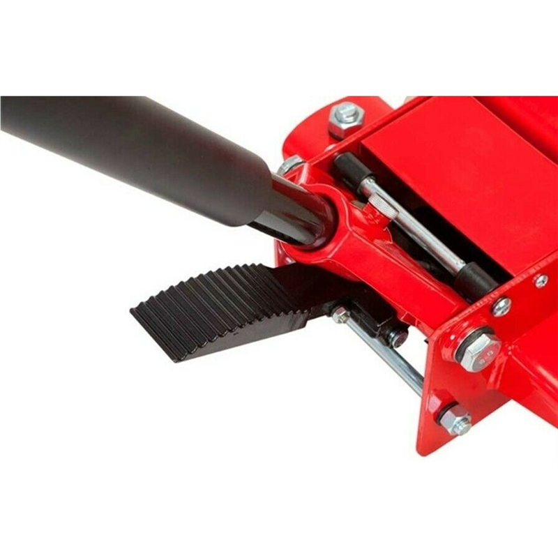 The unit is engineered with a double lifting piston mechanism and a convenient foot pedal, allowing you to reach the chassis contact point rapidly before engaging the handle for the heavy lifting. Safety is paramount; the integrated speed limiter ensures a slow, controlled descent when the load exceeds 50 kg, preventing dangerous sudden drops.