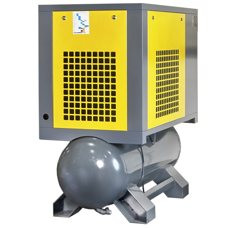 The AFLATEK 3in1 Screw 7.5A is a high-performance screw compressor that combines three key functions in one device: a compressor, a 150-liter air receiver, and an air dryer. This compressor is ideal for industrial, craftsmanship, and automotive workshop applications, providing clean and dry compressed air of the highest quality.
