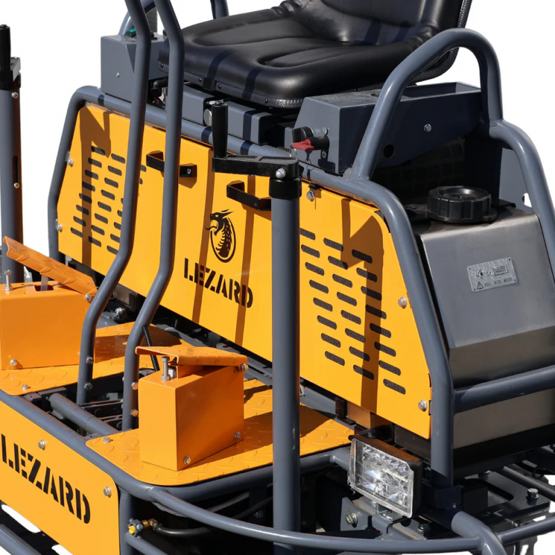 The LEZARD H200 is an advanced ride-on power trowel engineered for fresh concrete, specifically designed for intensive use on large surfaces. Equipped with a highly efficient twin-rotor working system and a reliable Zongshen 26HP engine, this machine delivers exceptional performance, precision finishing, and unmatched operator comfort.