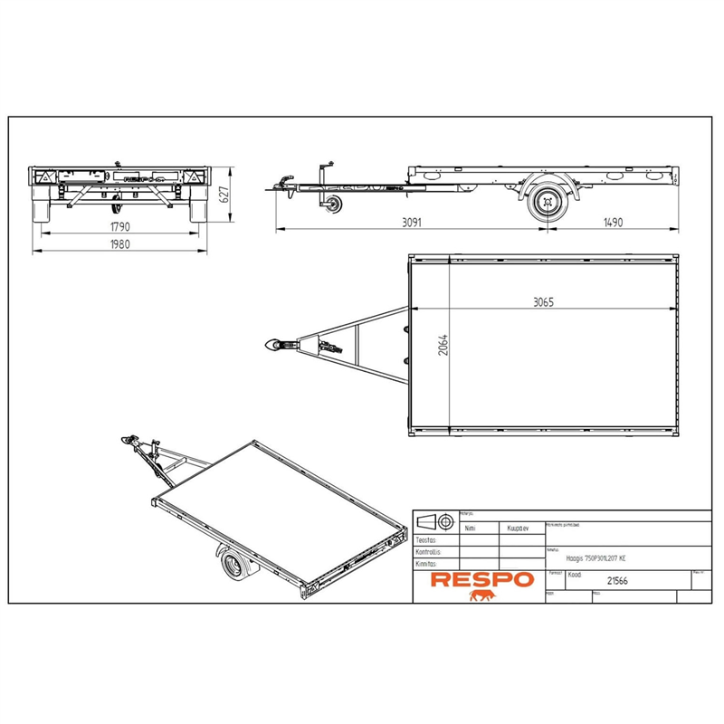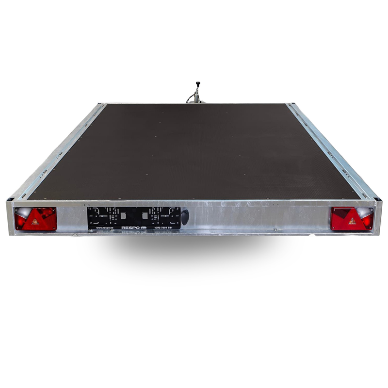 Outstanding handling characteristics are achieved through a suspension system featuring 4-sheet leaf springs and shock absorbers. This combination ensures a smooth ride even when fully loaded. The trailer is equipped with waterproof wheel hubs and a durable plywood floor that is both waterproof and slip-resistant, making it safe for loading in various weather conditions. With a gross weight of 750 kg and a payload capacity of 460 kg, this trailer is best described as a user-friendly, high-quality transport tool suitable for both professional and domestic use.