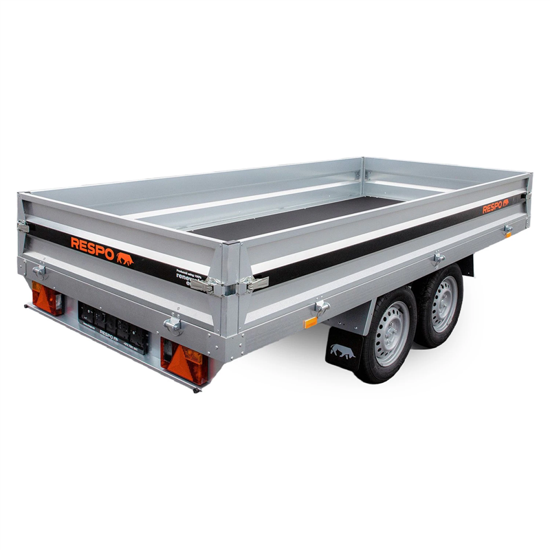Engineered for stability and smooth towing, this model is equipped with a reliable 2x Torsion axle system, waterproof wheel hubs, and shock absorbers. The loading area features a durable, waterproof plywood floor with a slip-resistant surface to ensure cargo safety. A standout feature of the PLH model is its flexibility; all boards are easy to open and remove, allowing for convenient loading from all sides or use as a completely flat platform.