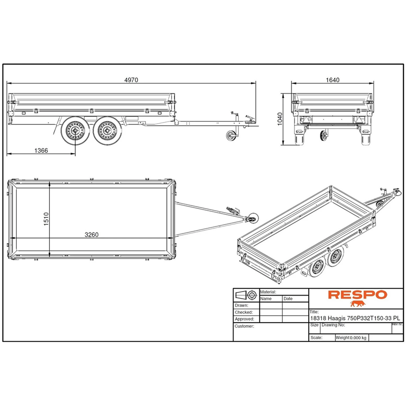 The 750P332T150 PLH is a high-quality, innovative trailer designed for versatility and longevity. It features monolithic bent side panels and robust HuckLok® bolt joints, ensuring structural integrity under various load conditions. The frame is constructed from Magnelis® coated sheet metal, which is scientifically proven to be three times more resistant to corrosion than standard hot-dip galvanised sheet metal, making it ideal for harsh weather conditions.