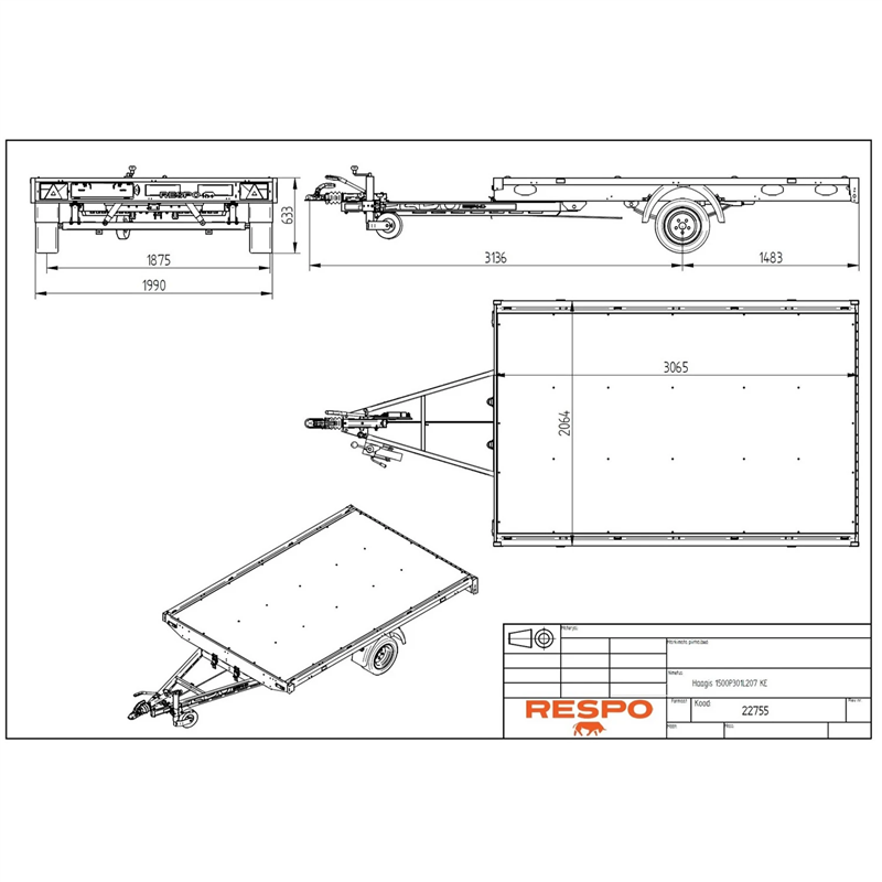 This user-friendly trailer is equipped with waterproof wheel hubs and a durable plywood floor that is both waterproof and slip-resistant, making it suitable for various weather conditions and cargo types. With a gross weight of 1500 kg and a substantial payload capacity of 1164 kg, it is an ideal choice for heavy-duty hauling. The trailer also features a tipping mechanism and fully removable sides and hatches, providing maximum versatility for loading and unloading operations.