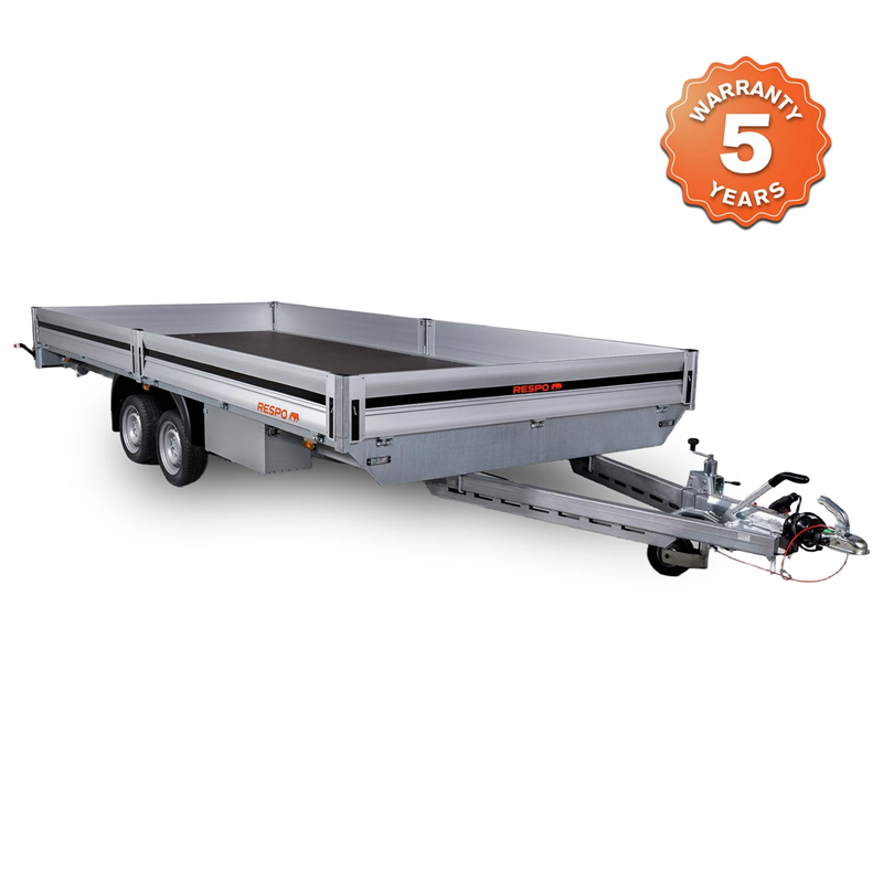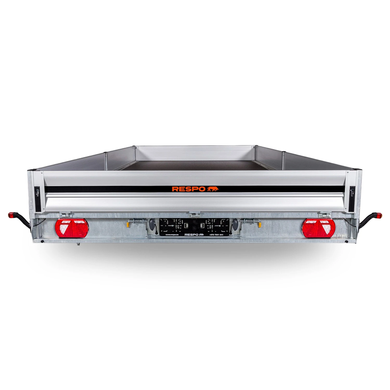 Designed for stability on difficult terrains, the trailer is equipped with a reliable double torsion axle system. The loading platform consists of a durable, waterproof, and slip-resistant plywood floor, ensuring cargo remains secure during transit. For maximum versatility, all side boards are easy to open and remove, allowing for convenient loading from all sides. This model comes fully equipped with essential accessories, including aluminium ramps and a tool box.