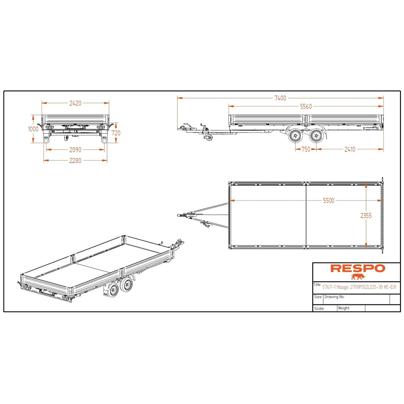 The 2700P552T225 Flatbed Trailer is engineered for professional transport needs, featuring a tough and durable hot-dip galvanised (HDG) welded steel frame. Constructed using Magnelis® coated sheet metal, this trailer offers superior longevity, being three times more resistant to corrosion than standard HDG sheet metal. It is an ideal solution for transporting vehicles, machinery, or bulky materials.