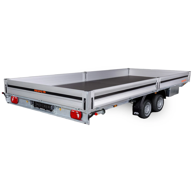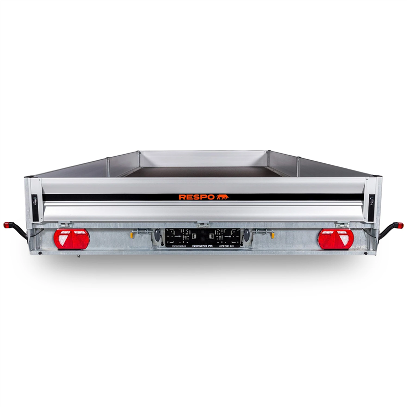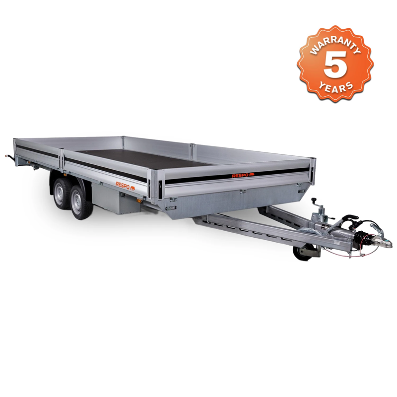Stability is paramount with the reliable double torsion axle system, providing a smooth tow on difficult terrains. The platform is fitted with a waterproof, slip-resistant plywood floor for secure cargo handling. Designed for versatility, all side boards are easily removable, allowing for convenient loading and unloading from all sides. This model comes as a complete package with essential accessories, including aluminium ramps and a toolbox, making it ready for immediate work.