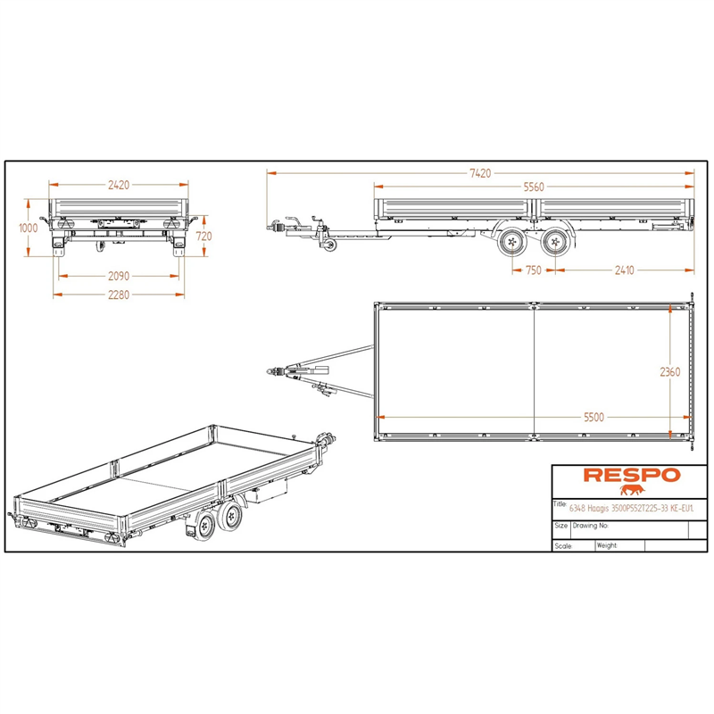 Experience superior durability and transport efficiency with the 3500P552T225 Flatbed Trailer. Engineered for heavy-duty applications, this trailer features a tough, hot-dip galvanised welded steel frame designed to withstand rigorous use. The construction utilises Magnelis® coated sheet metal, which offers three times the corrosion resistance of standard HDG sheet metal, ensuring long-lasting performance even in challenging environments.