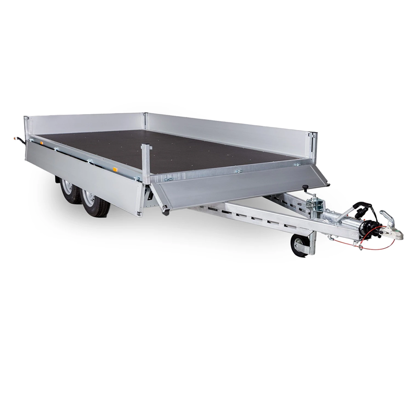 Designed for stability and reliability, the trailer features a double torsion axle system that ensures a smooth towing experience, even when navigating difficult terrains. The loading area is fitted with a durable, waterproof plywood floor that is slip-resistant, ensuring your cargo remains secure during transit. For maximum versatility, all side boards are easy to open and remove, allowing for convenient loading from all sides and transforming the unit into a completely flat platform when required.