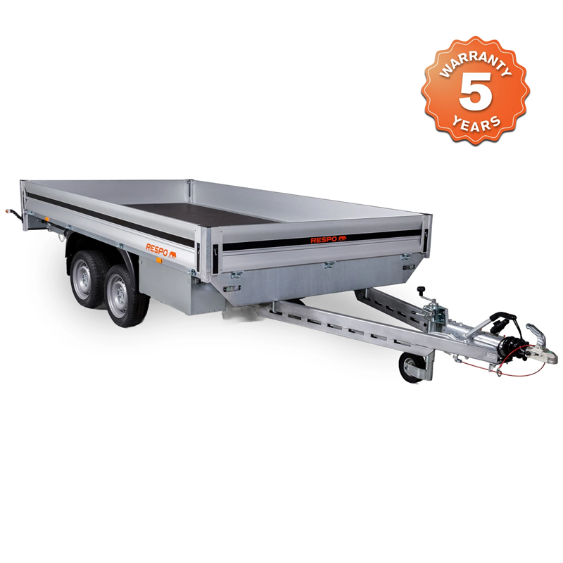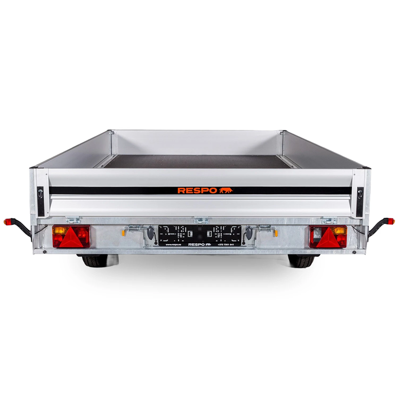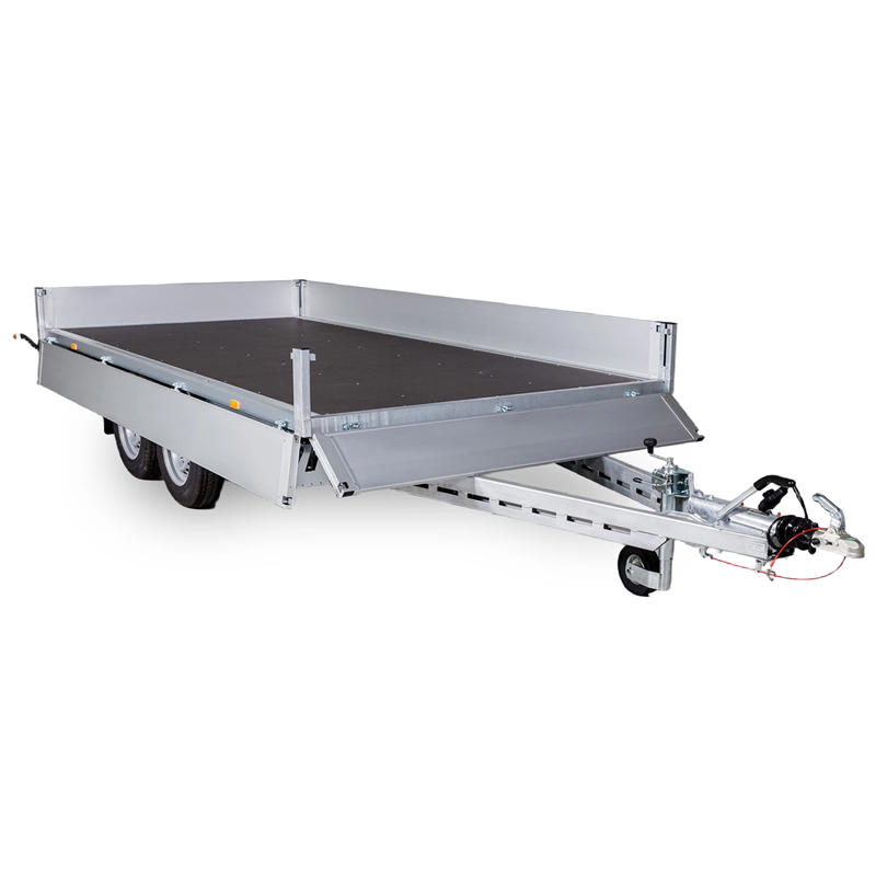 Stability and reliability are paramount in this design, featuring a double torsion axle system that ensures smooth towing and better stability on difficult terrains. The loading platform is constructed from durable, waterproof, and slip-resistant plywood, making it safe for various cargo types. For maximum versatility, all side boards are easy to open and remove, transforming the unit into a completely flat platform for convenient loading from all sides.