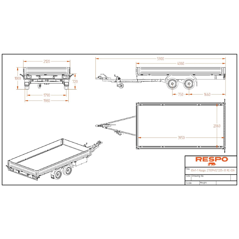The 2700P402T205 Flatbed Trailer is a robust and versatile transport solution designed for professional use. Engineered with a tough, hot-dip galvanised welded steel frame, this trailer offers exceptional durability and structural integrity. A standout feature is the use of Magnelis® coated sheet metal, which provides three times the corrosion resistance of standard galvanised sheet metal, ensuring a long service life even in challenging weather conditions.