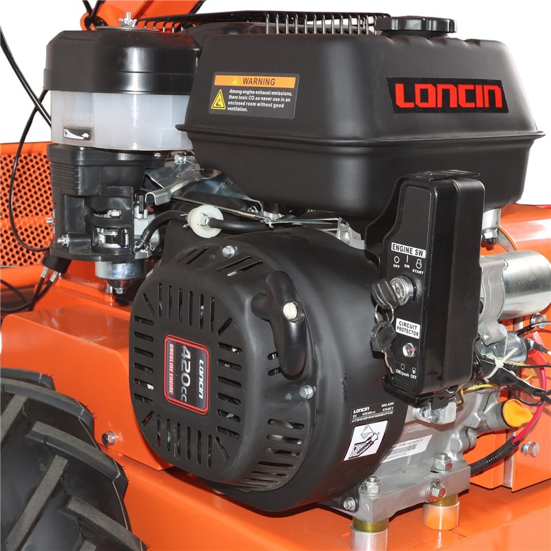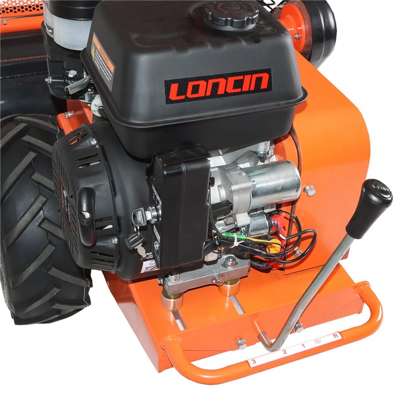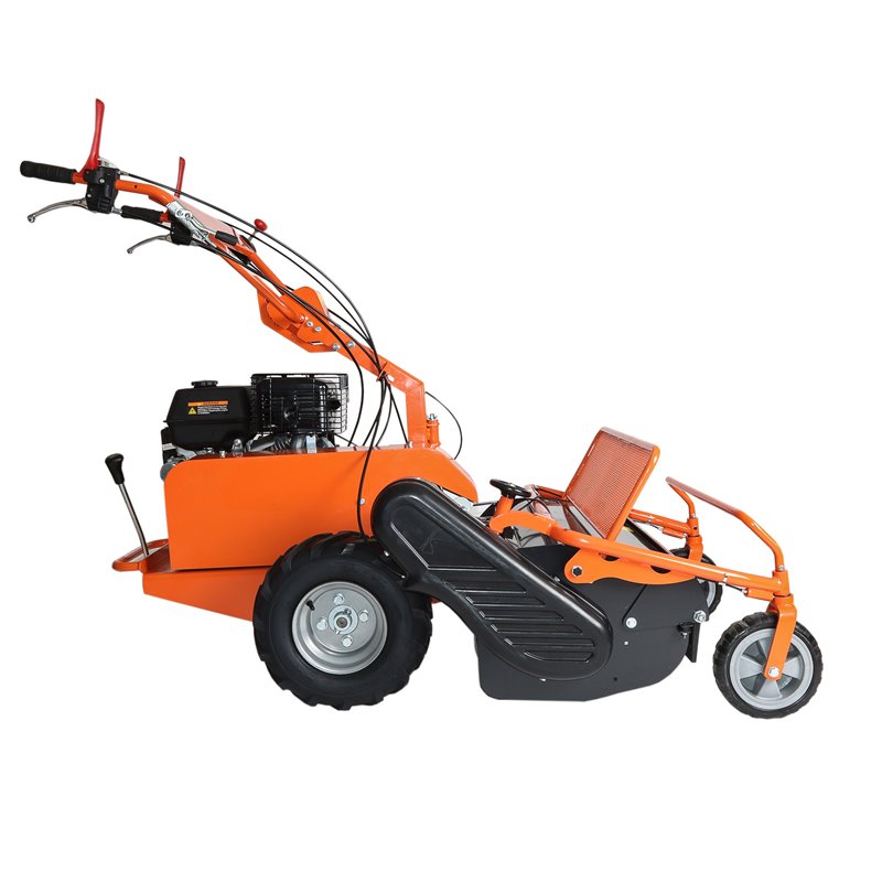 AGROSSI-Pro SK-760R is a professional mower, mulcher designed for removing and shredding overgrown grass, dense vegetation. Maneuverable and very easy to control. 3 forward and 1 reverse speeds ensure the ability to adapt to any working conditions. The mower is maneuverable and has good cross-country ability on uneven terrain with slopes. The cutting deck is 76 cm wide with 40 rotating Y-shaped blades-shredders. The cutting height is adjustable from 20 to 80 mm.