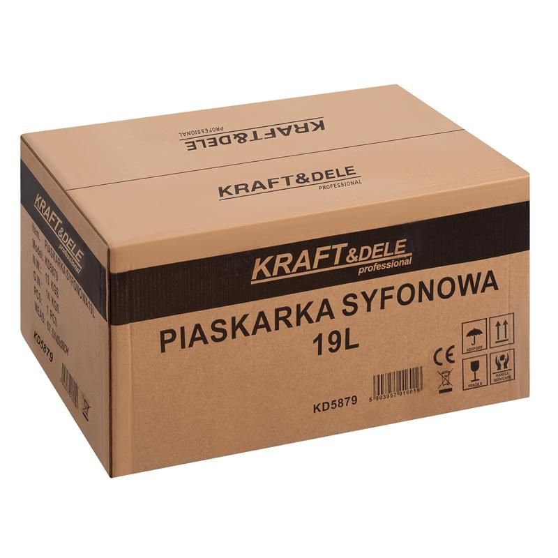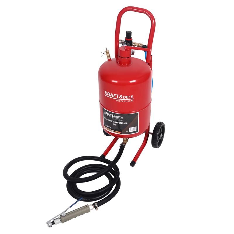 The KD5879 siphon sandblaster with a 19-liter capacity is made of durable materials, resistant to abrasives and workshop conditions. Its ergonomic design allows for comfortable operation even during extended periods of use.