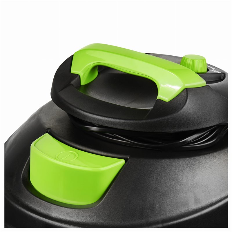 Cyclonic technology is used to collect dirt through a swirling motion into the container. The bagless design means improved hygiene, consistent suction power, and lower operating costs. Easy to transport and store thanks to its wheels, and an ingenious design allows for clever storage of the included crevice tool and brush.