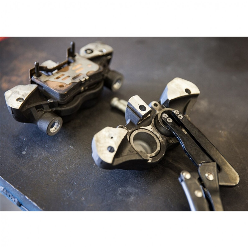 Specialized pliers designed to remove motorcycle brake caliper pistons safely without causing damage. Features a clamp screw to securely fix the pliers into the piston cup for effective and controlled extraction.