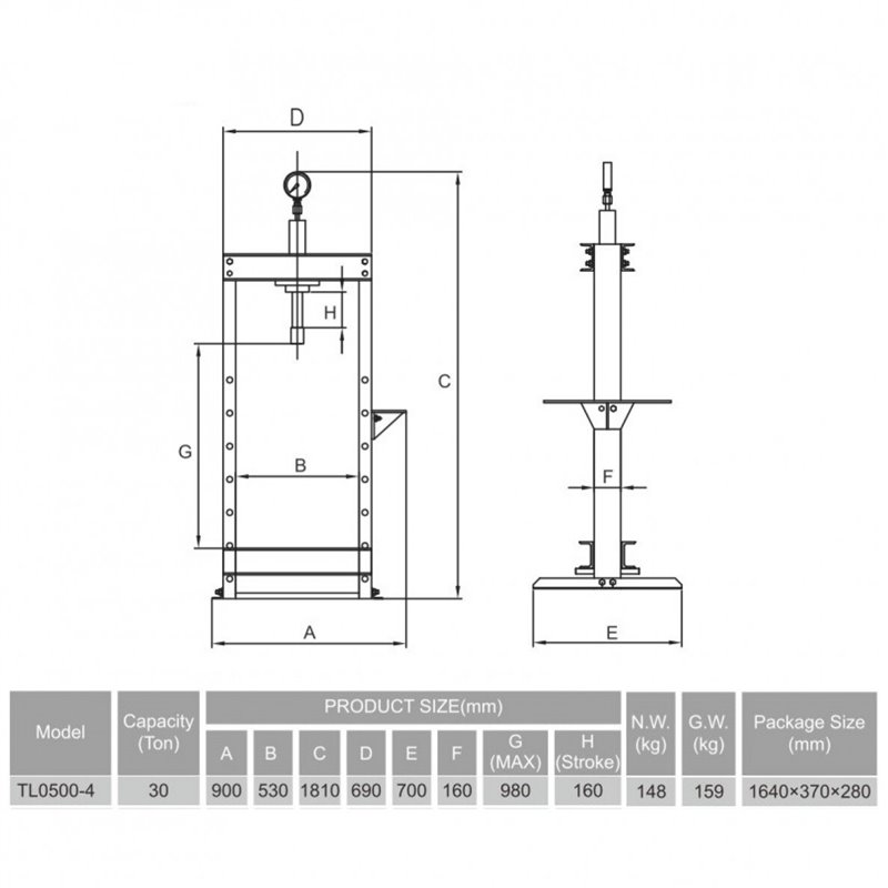Be sure to loosen the hydraulic pump breather screw before using the press!