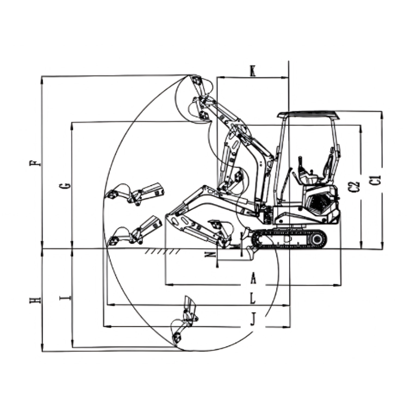 Weighing 1200 kg with dimensions of 2350 x 940 x 2270 mm, this mini excavator easily fits onto smaller trailers and commercial vehicles. You will not need to invest in a new transport vehicle, and its compact size allows for safe operation in tight spaces without the risk of property damage.