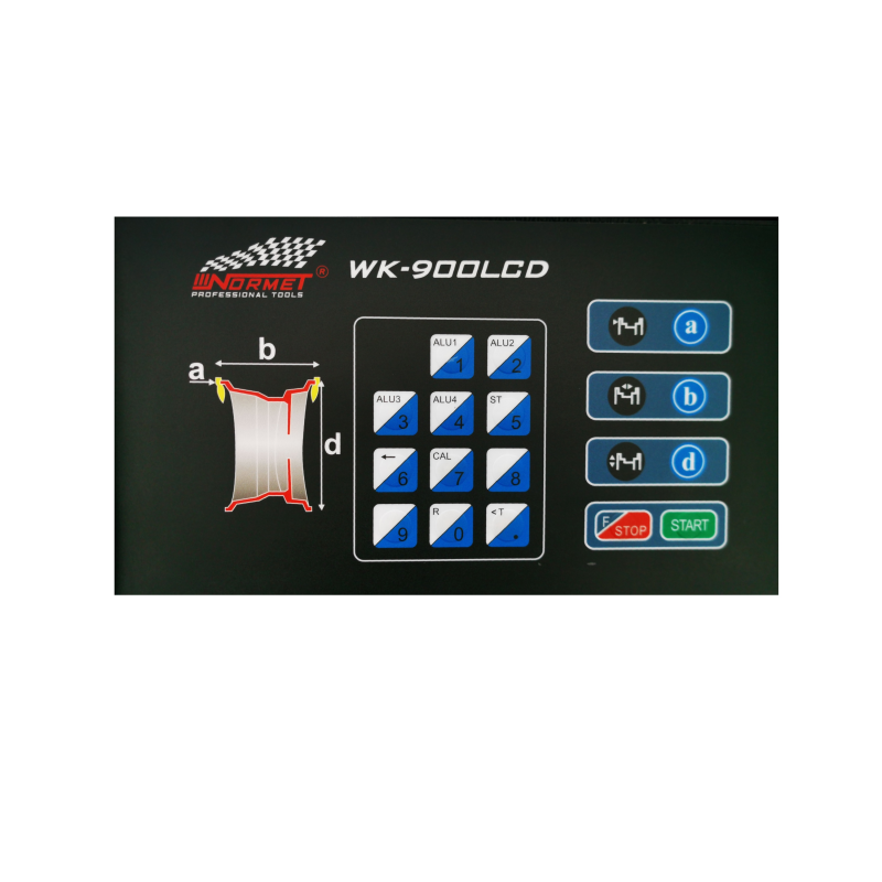Wheel Balancer NORMET WK-900LCD with automatic measurement features, 230 V power supply, and high precision balancing for rims 1.5" to 16" wide and 10" to 24" in diameter.