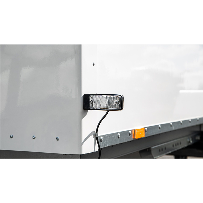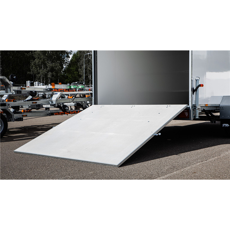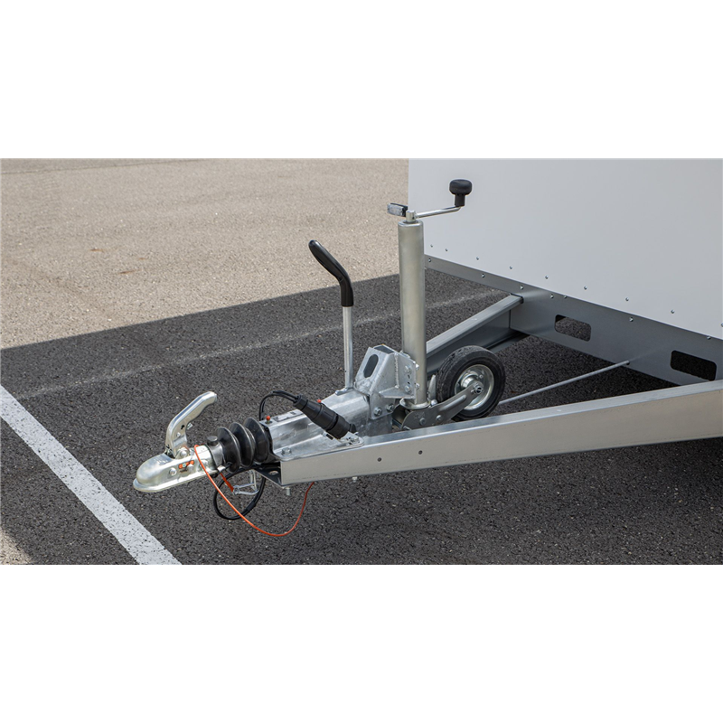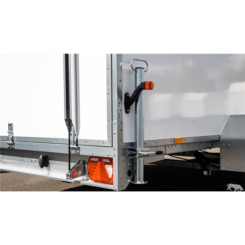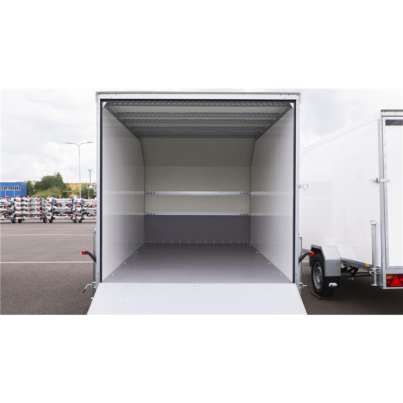 A highly durable van trailer featuring a sleek and aerodynamically optimised design to minimise wind resistance and improve towing efficiency. The walls are constructed using weatherproof 25mm sandwich panels, providing excellent protection and insulation for your cargo. Manufactured from high-quality Magnelis® coated sheet metal, this trailer offers three times the corrosion resistance of standard hot-dipped galvanised steel. To ensure smooth handling and long-lasting performance, it is equipped with a high-quality twin leaf spring axle system, waterproof wheel hubs, and heavy-duty shock absorbers.